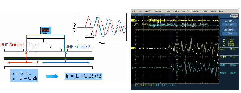 根据信号到达每个传感器的时间差来进行 GIS 局部放电的定位。